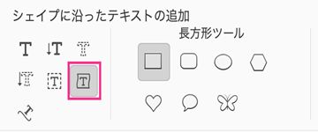 シェイプに沿ったテキストの追加ツールで使用可能なシェイプにテキストを追加できます。
