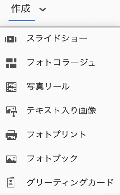フォトプロジェクトでは、プロフェッショナルな見栄えのフォトブック、グリーティングカード、フォトカレンダー、フォトコラージュ、[CD/DVD ジャケット、および CD/DVD ラベル(2022 以前のバージョンで該当)] をすぐに作成できます。Photoshop Elements ウィンドウの右上隅にある「作成」ボタンをクリックすると、Photoshop Elements で作成できるフォトプロジェク Elements ウィンドウの右上隅にある「作成」ボタンをクリックすると、Photoshop Elements で作成できるフォトプロジェクトの Elements ウィンドウの右上隅にある「作成」ボタンをクリックすると、Photoshop Elements で作成できるフォトプロジェク Elements ウィンドウの右上隅にある「作成」ボタンをクリックすると、Photoshop Elements で作成できるフォトプロジェクトの一覧が表示されます。