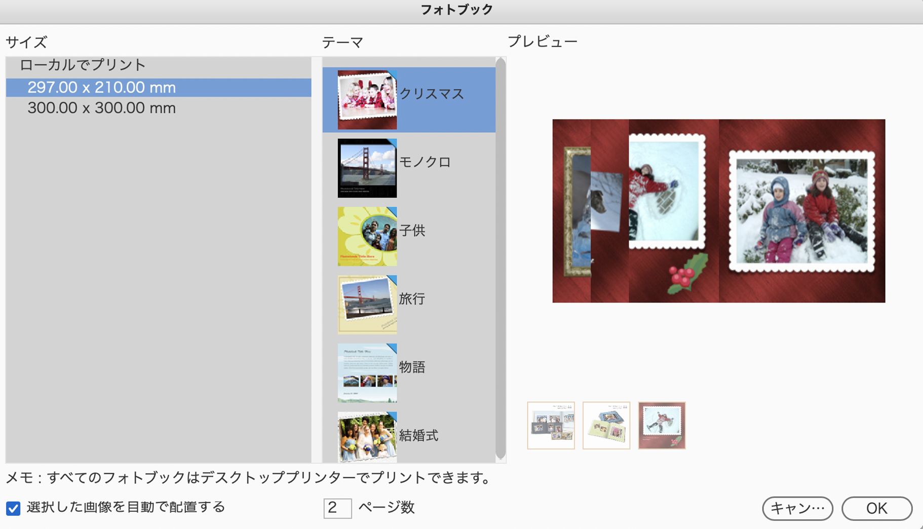 フォトブックダイアログボックスで次の操作を行い、「OK」をクリックします。