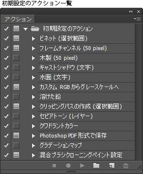 Photoshop にはあらかじめいくつかのアクションが用意されており、これらのアクションはすぐに使用することができます。