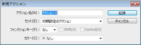 アクション名を入力し、アクションセットを選択し、追加のオプションを設定し、「記録」ボタンをクリックします。アクションパネルの記録開始ボタンが赤丸に変わります。