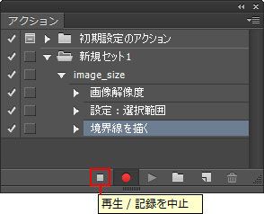 アクションとして記録する操作が終了したら、「再生 / 記録を中止」ボタンをクリックします。