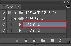 ウィンドウ/アクション を選択し、アクションパネルを表示します。