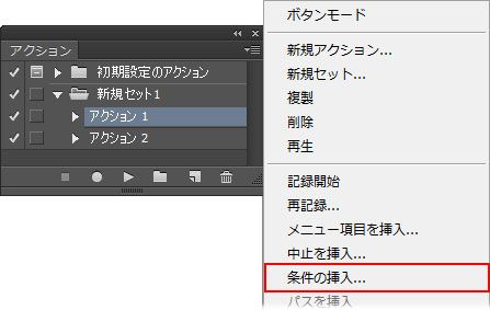 アクションパネルメニューから、「条件の挿入」を選択します。