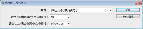以下の例は、横方向のドキュメントに対してはスキップし、縦方向のドキュメントに対して「アクション 2」を適用します。
