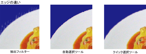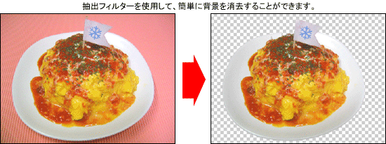 抽出フィルターを使用すると、レイヤー上の描画オブジェクトから簡単に背景を消去することができます。オブジェクトを抽出すると、背景は透明になります。抽出したオブジェクトのエッジには、背景から派生したカラーコンポーネントが含まれないため、新しい背景の上に重ねても縁取りが生じません。