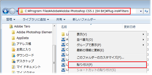 ¥¥Program Files¥<Adobe Photoshop CS5 または CS5.1>¥Plug-ins¥Filters
