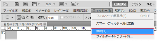 Photoshop を起動し、フィルターメニューに「抽出」が表示されているか確認します。