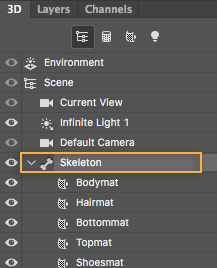 某些 Creative Cloud 应用程序、服务和功能在中国不可用。 Fuse CC を使用すると、広範な種類のボディパーツ、髪の毛、衣料品、衣服の生地(革、綿、金属、プラスチックなど)を使用して、独自の人型のキャラクターを簡単に組み立てることができます。 準備ができたら、3D キャラクターを Fuse から直接 Creative Cloud Libraries にアップロードできます。 3D キャラクターを Fuse から Creative Cloud Library にアップロードする Photoshop で、下記の手順に従って、3D ワークスペースでアセットを開いて、キャラクターにアニメーションを適用できます。 ライブラリパネルから、キャラクターを同期させたライブラリを開きます。3D アセットの下で Fuse のキャラクターが表示されます。 キャラクターをダブルクリックして、開きます。 3D ワークスペースに切り替えます(他のワークスペースがアクティブの場合)。 3D レイヤーでキャラクターのスケルトンを選択します。 属性パネルで、ボディを選択します。 アクション(ダンスなど)を検索します。 サムネールをクリックして、アニメーションをモデルに適用します。必要に応じて、アニメーション用にパラメータを調整します。例えば、アニメーションの長さをトリミングできます。 ここでは、属性パネルで、顔を選択します。 表情(幸福など)を検索します。 サムネールをクリックして、アニメーションをモデルに適用します。必要に応じて、表情の強さや目と頭の位置を調整します。 これで、キャラクターにアニメーションとポーズが完全に適用され、選択したシーンに合成する準備が整いました。 リーガルノーティス | プライバシーポリシー