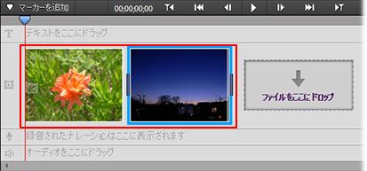 スライドショーの作成は、プロジェクトに取り込んだ静止画をシーンラインにドラッグするだけの簡単な操作で行えます。