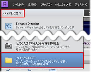 ウィンドウ左上の「メディアを追加」をクリックし、「ファイルとフォルダー」を選択します。