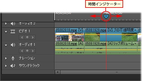 モニターパネルで映像を確認しながら時間インジケーターをドラッグし、静止画として書き出す位置に合わせます。
