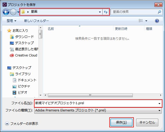 表示される プロジェクトを保存 ダイアログボックスで [ファイル名] を入力し 任意の保存場所を選択し、[保存] ボタンを押してファイルを保存します。