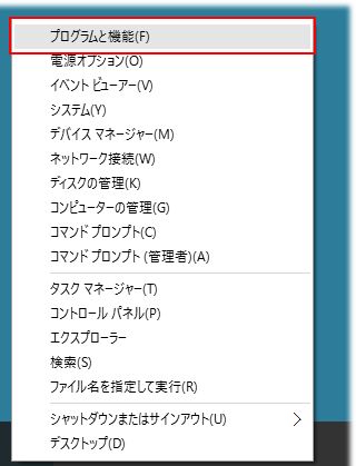 スタートボタンを右クリックし、[プログラムと機能] を選択します。