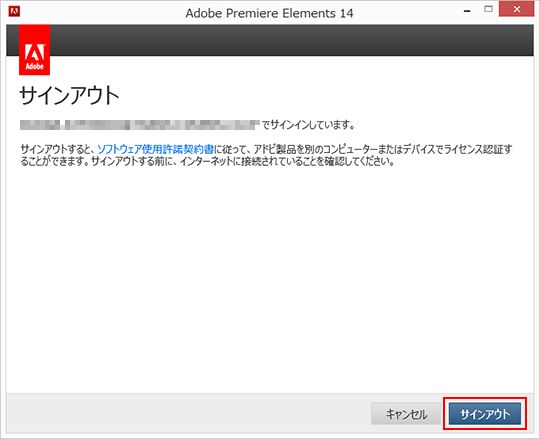 アンインストールの前に、ライセンス認証を解除します。プレミアエレメンツ14のライセンス認証は、製品からサインアウトすることで解除されます。