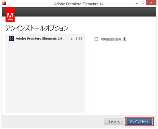 「アンインストールオプション」が表示されたら、 [アンインストール] ボタンをクリックします。