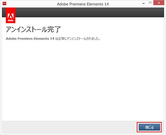 [アンインストール完了] と表示されたら、 [閉じる] ボタンをクリックします。