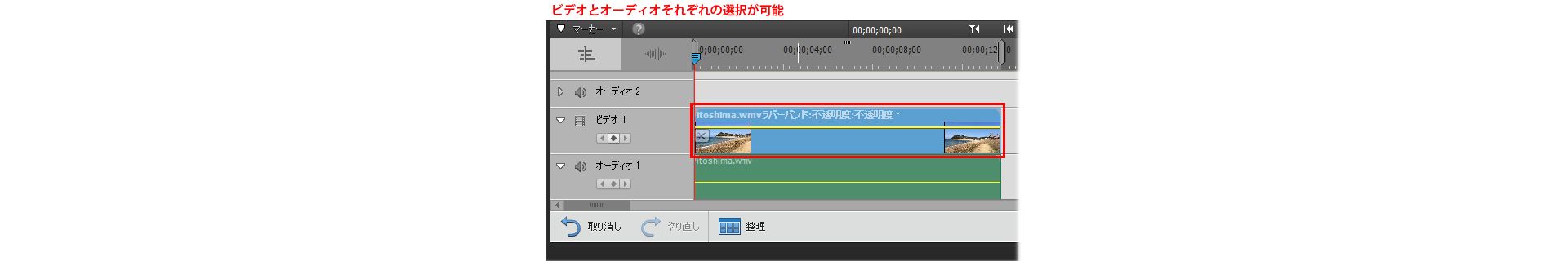 クリップを選択するとビデオとオーディオ両方選択されていた状態から、ビデオまたはオーディオクリップのいずれかを選択できるようになります。