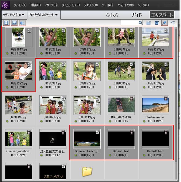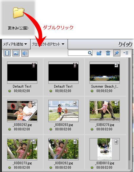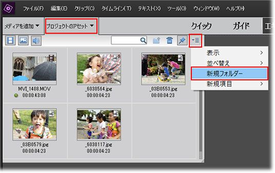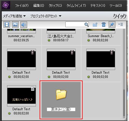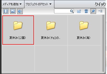 フォルダーにまとめておくと、あとでプロジェクトのアセットを見返したときにも分かりやすいですし、不要なメディアファイルを削除するといった場合も対象のファイルを見つけやすくなりますね!