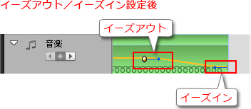 - オーディオのフェードイン/フェードアウト : フェードインおよびフェードアウトの両方を同時に設定します。
