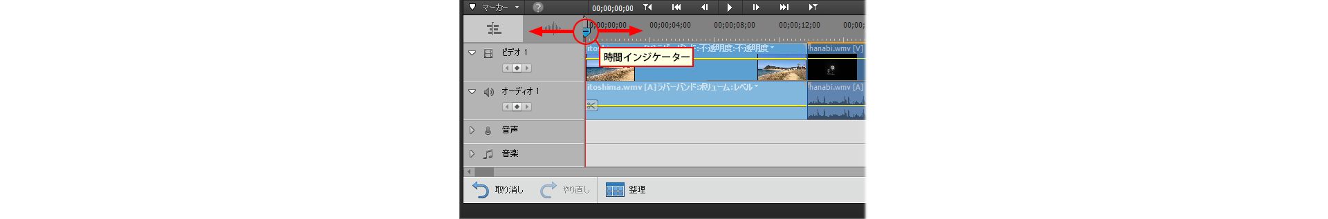 タイムラインで、BGM を開始する位置に時間インジケーターを移動します。
