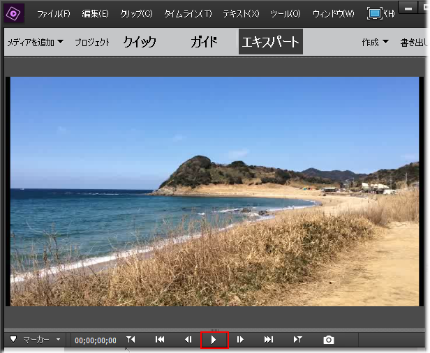 - プレビューウィンドウ下部の [再生 / 一時停止] ボタンをクリックします。