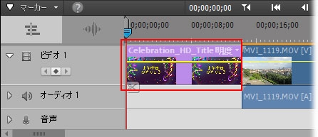 タイトル作成やテキスト入力作業を一旦終了してから再び作業する場合は、タイムラインのタイトルまたはテキストクリップをダブルクリックすることで編集可能になります。
