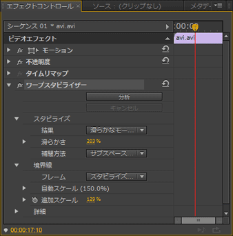 | ワープスタビライザーエフェクトで手ぶれを補正 | - | - | - | - | ◎ |
