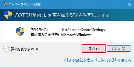 ユーザーアカウント制御ダイアログボックスが表示されたら「はい」をクリックします。