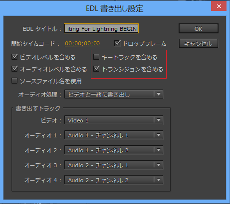 EDL 書き出しダイアログには、キートラックおよびトランジションを含めたり除外したりするための新しいオプションがあります。