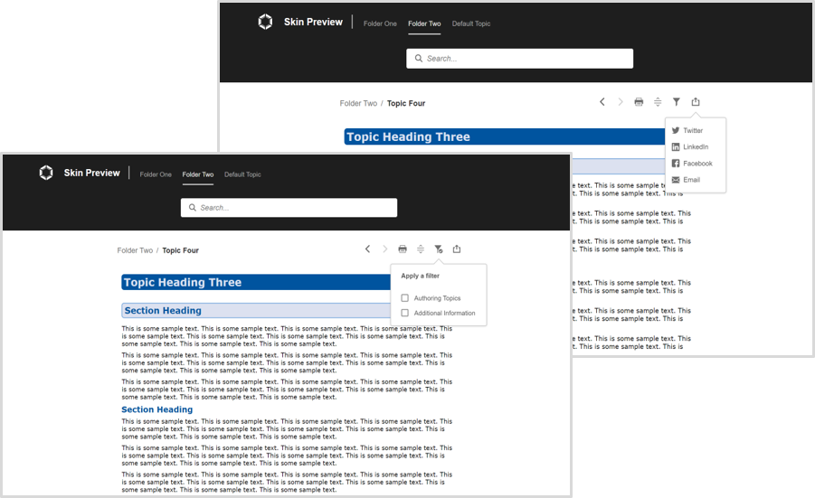 - レスポンシブ HTML5 およびフレームレス出力のミニ目次で、トピックの小見出しで使用されている条件タグに関わらず、すべての見出しテキストが表示されます。 また、目次を折りたたんでもキャプションがそのまま残ります。 (バグ ID - 10402)