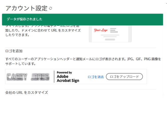 ロゴファイルがアップロードされると、成功メッセージが表示されます。