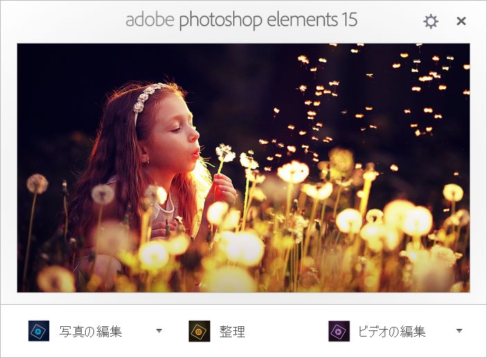 Photoshop Elements 15、Premiere Elements 15 が起動します。