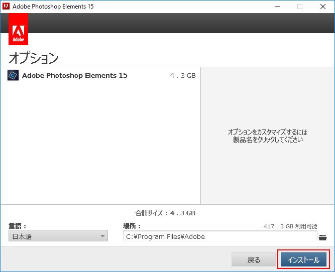 ここでは例として Photoshop Elements 15 の画面キャプチャーを使用していますが、Premiere Elements 15 も手順は同様です。
