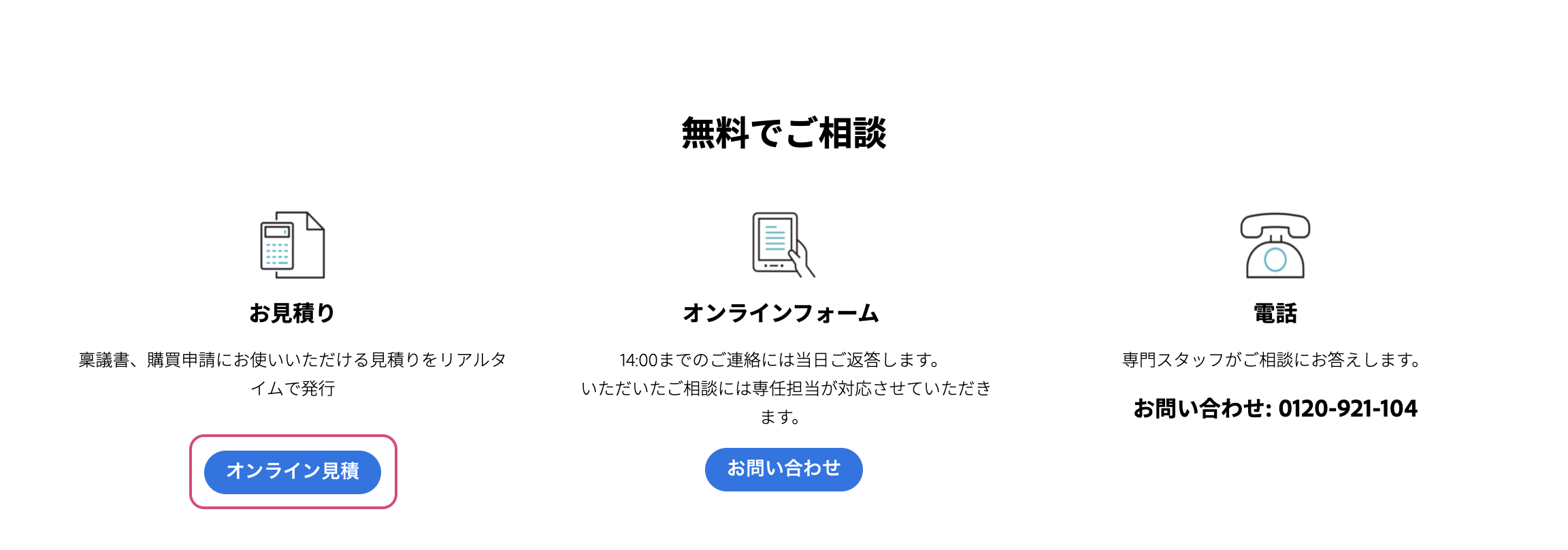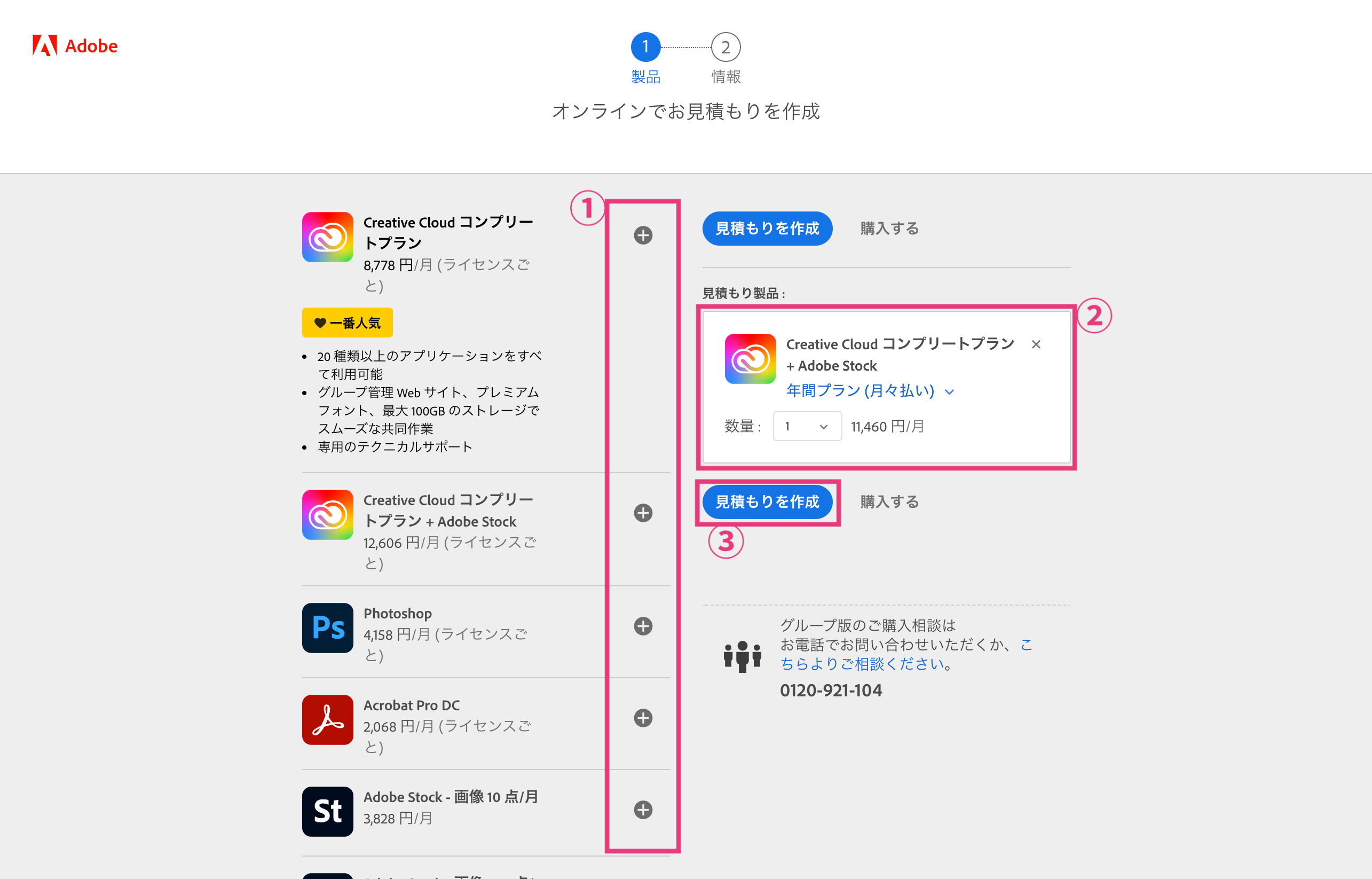 お見積りはアドビ直販窓口またはオンラインで可能です。