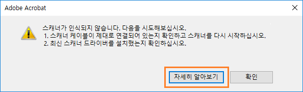 스캔과 관련된 모든 오류 메시지에 추가 정보 옵션이 추가되었습니다. 이 옵션을 클릭하면 문제 해결 페이지로 이동합니다.