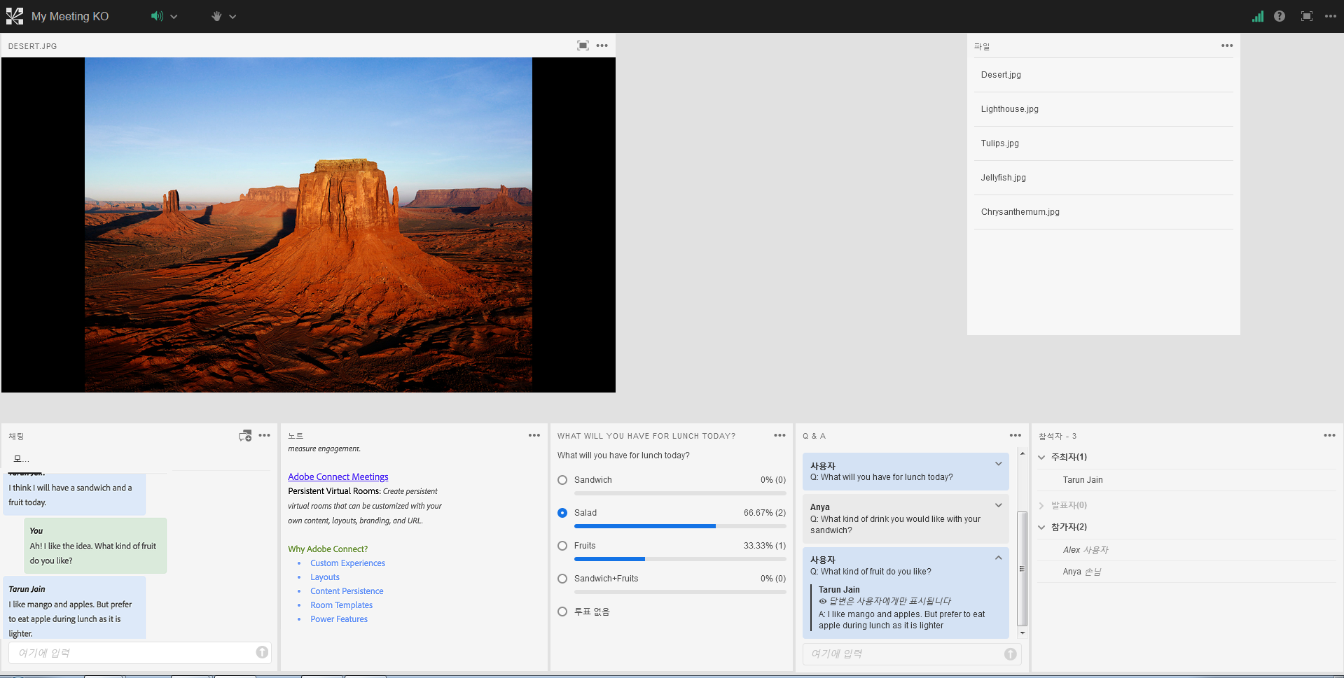 이 릴리스에서는 회의실 내에서 공동 작업을 더 많이 수행할 수 있는 회의실 내 채팅, 채팅 패널을 소개합니다.