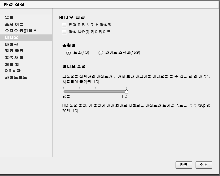 계정 관리자가 응용 프로그램 및 브라우저 인터페이스 설정을 주최자가 회의실을 결정하게 합니다로 설정했다면 주최자는 각 회의실에 대해 향상된 오디오/동영상 환경 또는 표준 보기를 선택할 수 있습니다.