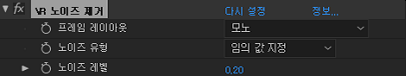 | 임의적 속도 | 이 매개 변수를 사용하면 푸티지에서 프랙탈 노이즈 입자의 임의적 속도를 설정할 수도 있습니다. |