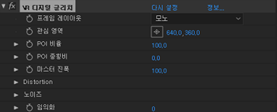 | POI 비율(관심 영역 비율) | 관심 영역에서 효과의 비율을 조정합니다. 값을 100으로 설정하면 효과가 전체 푸티지에 적용됩니다. 푸티지의 일부분에만 효과를 적용하려는 경우 값을 줄입니다. |