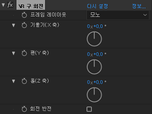 - 투영 회전: 360도 구형 환경에서 요소 위치의 X, Y 또는 Z 회전을 조정합니다.