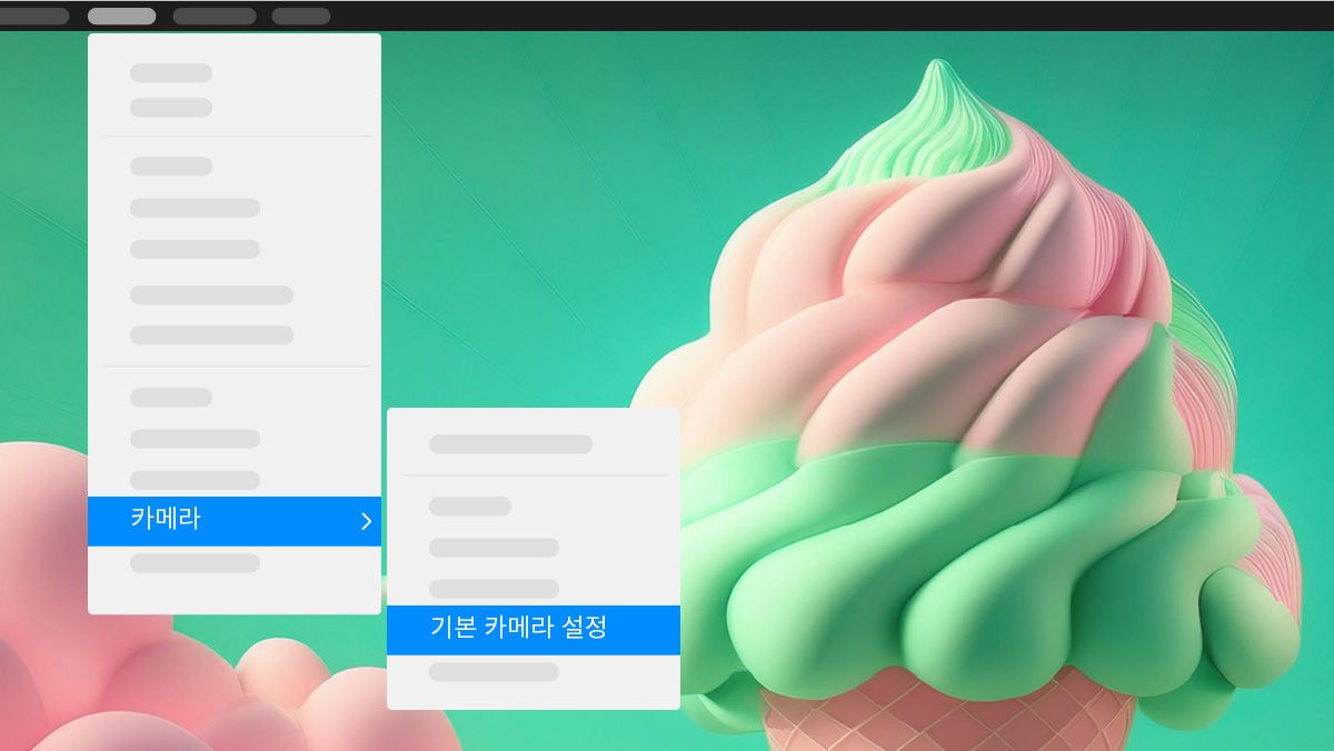 보기 메뉴를 사용하여 사용자 정의 보기와 기본 카메라 설정을 조정하면 카메라 레이어, 기본 활성 카메라 또는 사용자 정의 보기 중 무엇을 통해 볼지 정할 수 있습니다.
