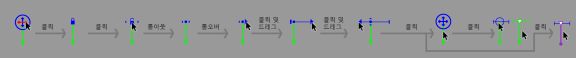 여러 개의 뼈가 줄줄이 연결된 뼈대에서는 뼈대의 분기에 있는 마지막 연결점의 모션을 제한할 수 없습니다. 마지막 연결점을 제한하는 것처럼 보이게 하려면 동영상 클립이 있는 뼈를 사용하고 마지막 뼈를 알파 속성이 0으로 설정되어 있는 동영상 클립에 연결하십시오. 그런 다음 마지막 뼈 대신 마지막에서 두 번째 뼈를 제한하십시오.