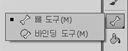 - 제어점에 연결된 뼈를 강조 표시하려면 [바인딩] 도구를 사용하여 제어점을 클릭합니다. - 연결된 뼈가 노란색으로 강조 표시되고 선택된 제어점이 빨간색으로 강조 표시됩니다.