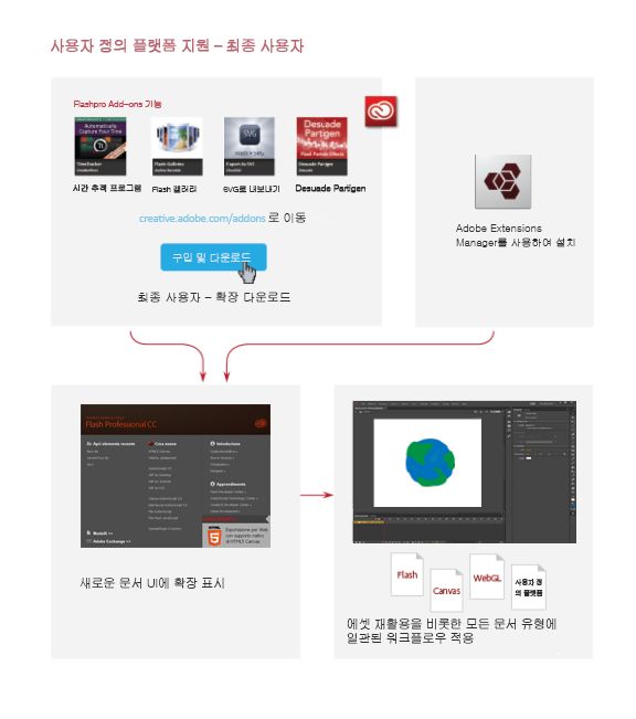 Animate용 추가 기능을 제작하는 개발자는 다음 작업 과정을 사용하여 플러그인을 개발하고 배포할 수 있습니다.
