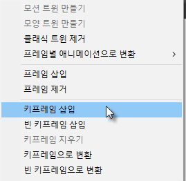 스테이지의 아무 곳이나 마우스 오른쪽 버튼으로 클릭하고 키프레임에 배포를 선택합니다.