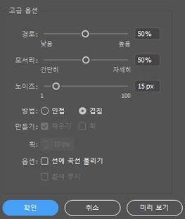 모퉁이를 강조하고 날카로운 구부리기가 모퉁이점으로 바뀔 가능성을 지정합니다. 값이 높을수록 모퉁이가 더 많아집니다.