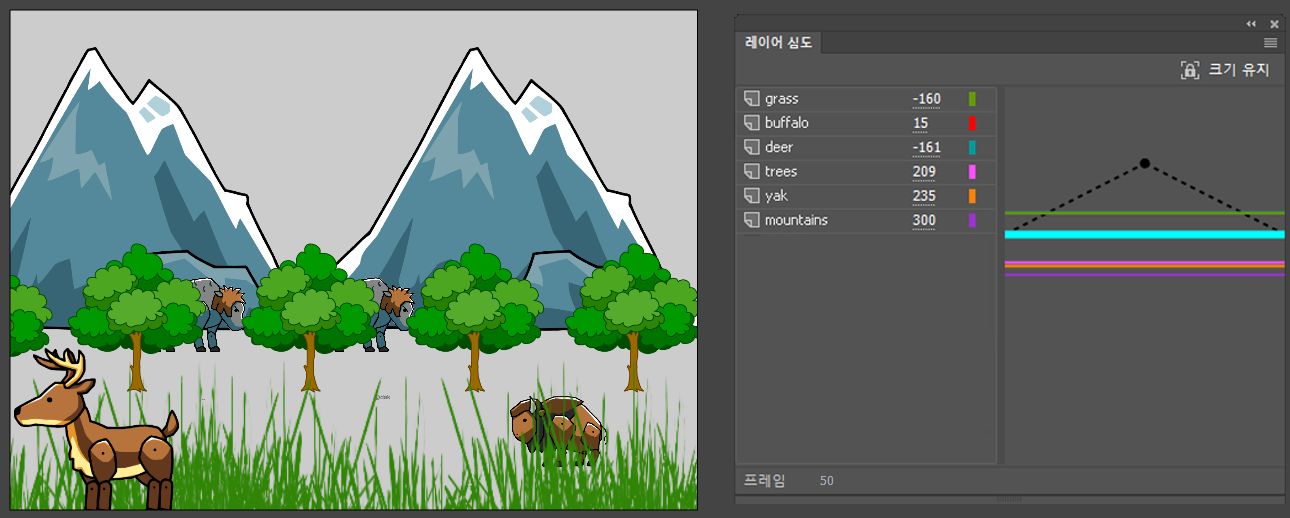레이어 심도 기능을 사용하여 카메라를 통해 애니메이션에 사용할 시차 효과를 간단히 만들 수 있습니다.