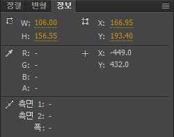 [정보] 패널이 표시되지 않은 경우에는 [윈도우] > [정보]를 선택합니다.