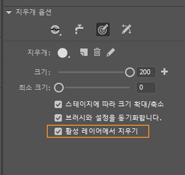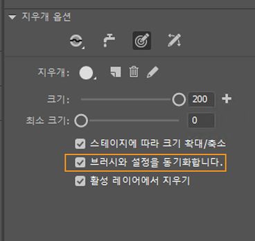 - 지우개 도구(E)에서 브러시로 동기화 설정 확인란을 활성화하십시오.